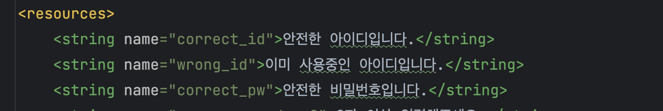 이렇게 string.xml에 value값으로 문자열을 추가해 주는 것이다.