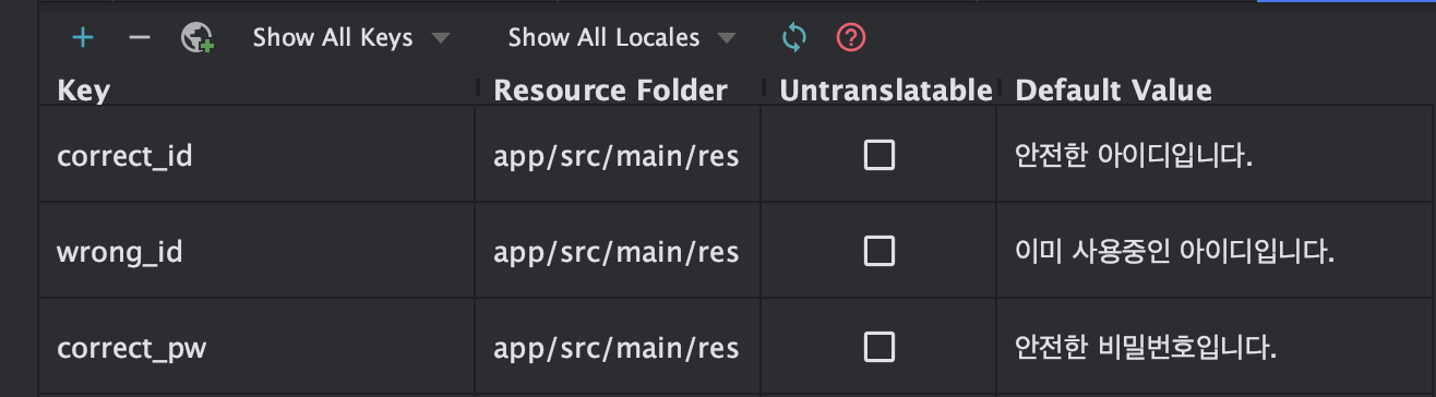 써보고 느낀 점은 String.xml에 있는 key와 value에 대해서 나라를 선택하면 모든 값들을 번역해 주는 줄 알았는데