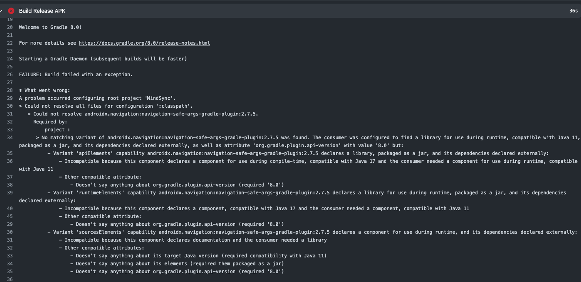 app을 release 하는 과정에서 자바 버전이 너무 낮아서 생긴 오류라는것으로 판단했고,