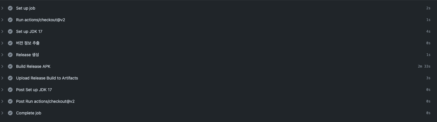 지금까지의 코드로는 commit 메시지를 통해서 tag를 추출해서 Release를 생성하고 app을 apk로 release까지 하는것을 완성했다.