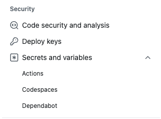 레포지토리에 들어가서 setting을 누르면 다음과 같이 위 코드와 비슷한 secret을 결정하는 곳이 있다.