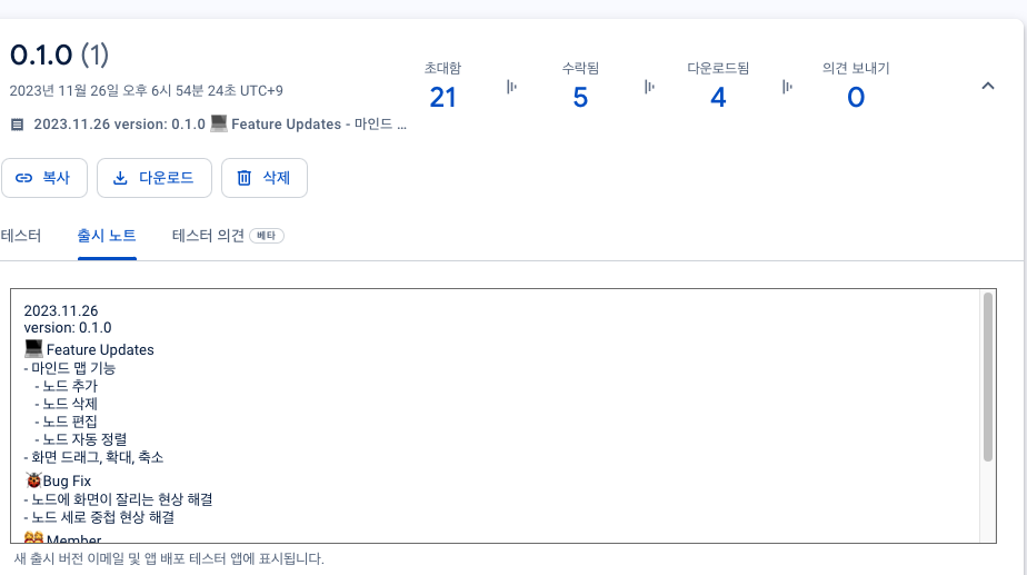 FireBase App Distribution에 추가한것을 알 수 있다.