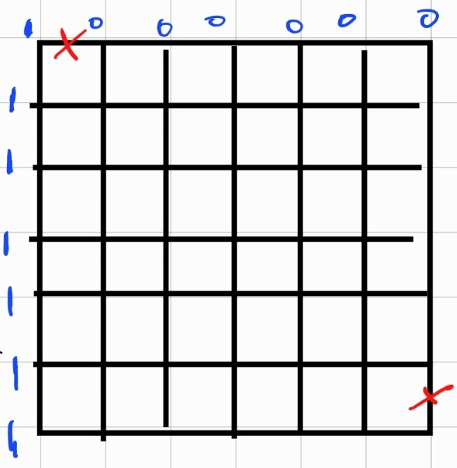 확률과 통계에서 풀었던 것처럼 기본적으로 맨 위와 맨 왼쪽은 경로의 수가 1로 고정입니다.
