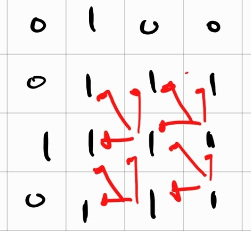 하나의 점에서 2x2의 정사각형인지 판단하는 방법은 간단했다.