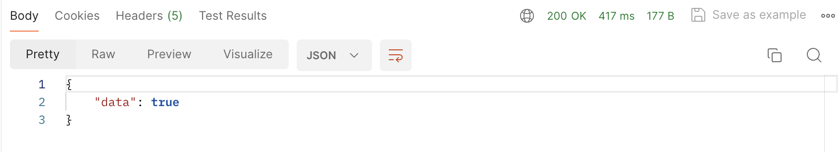 회원가입이라는 post 요청에 대해 body로 data 값이 true라는 결괏값을 받을 수 있었습니다.