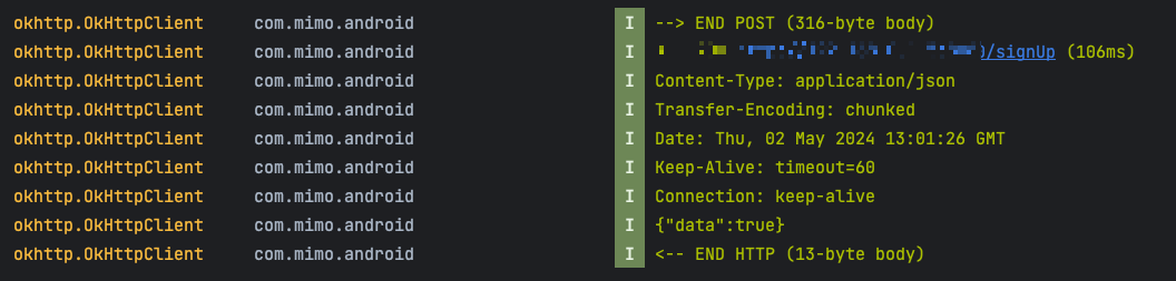 우선 OkHttpClient Log입니다.