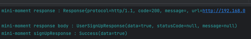 서버 코드에 맞는 UserSignUpResponse라는 구현체를 만들어서 서버와 통신을 진행합니다.