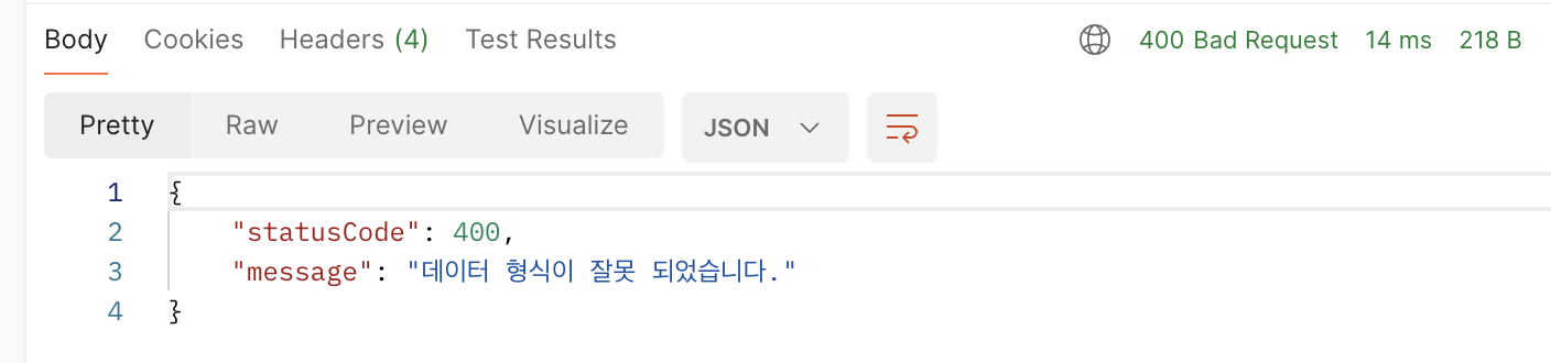 통상적인 에러 처리와 다르게 저는 실패와 성공 모두 바디를 담아서 보냈습니다.