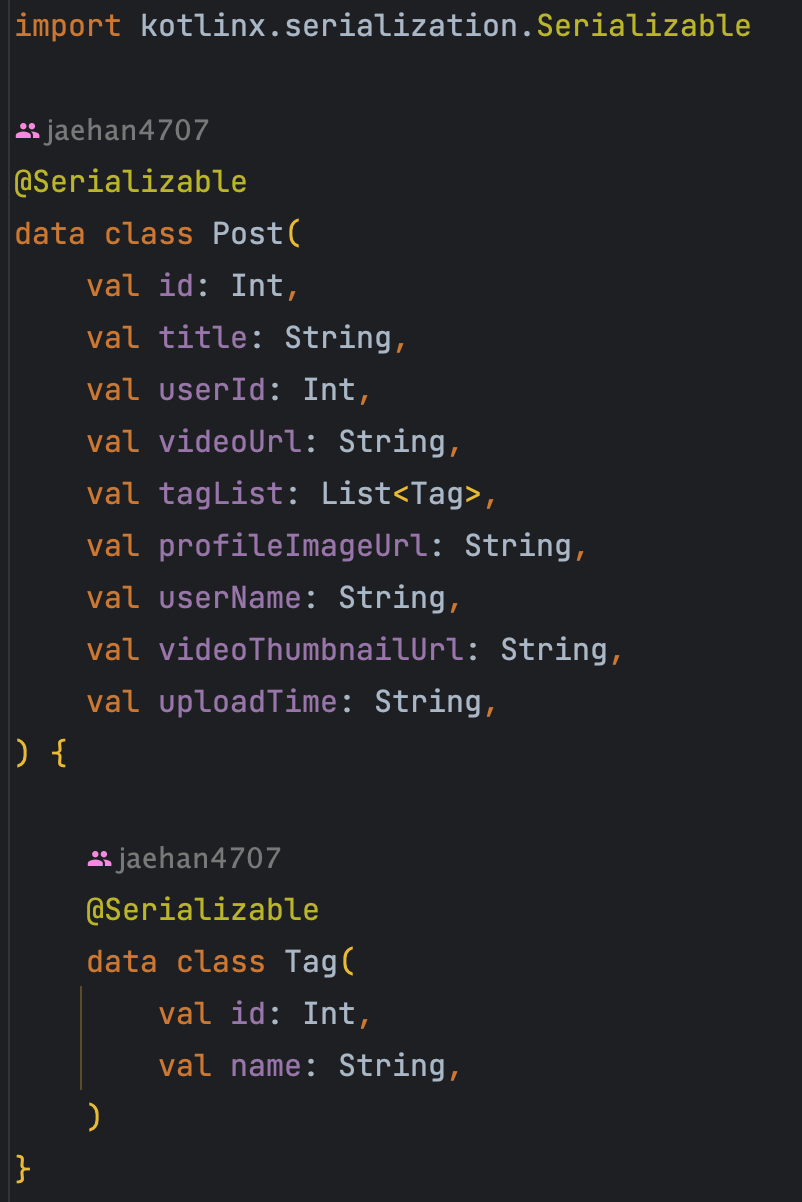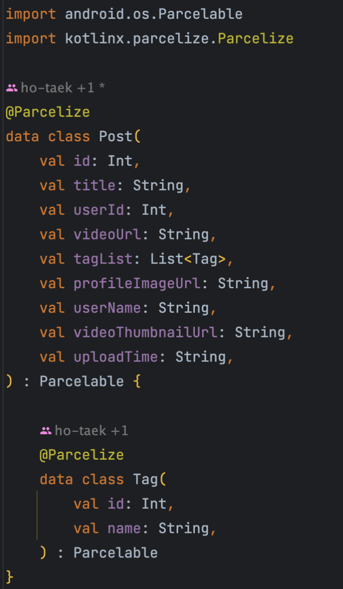 Android의 Parcelable이 아닌 Kotlin의 Serializable을 사용해 줬습니다.