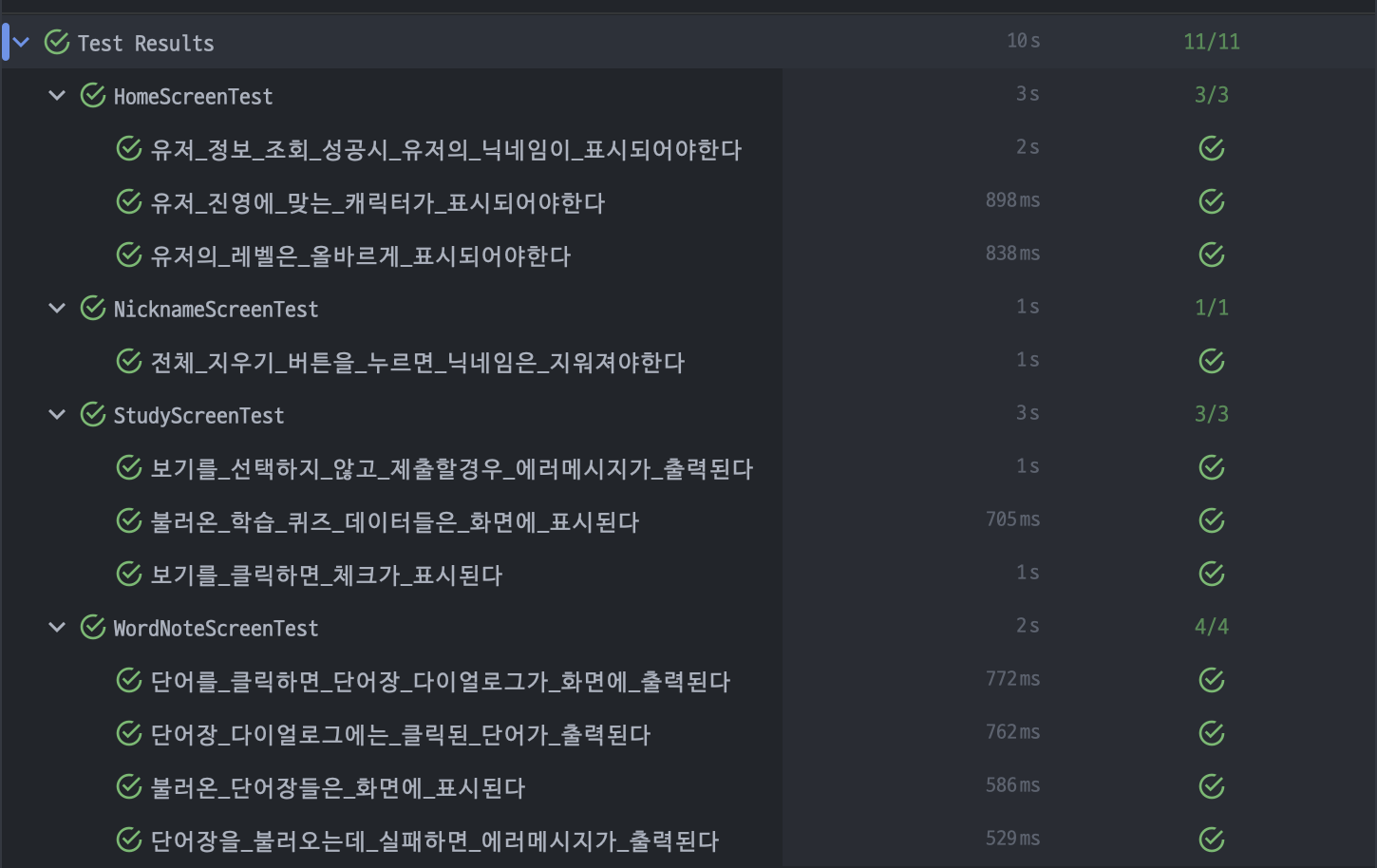 이제 프로젝트에서 내가 작성한 테스트 코드를 살펴봐야하는데요,