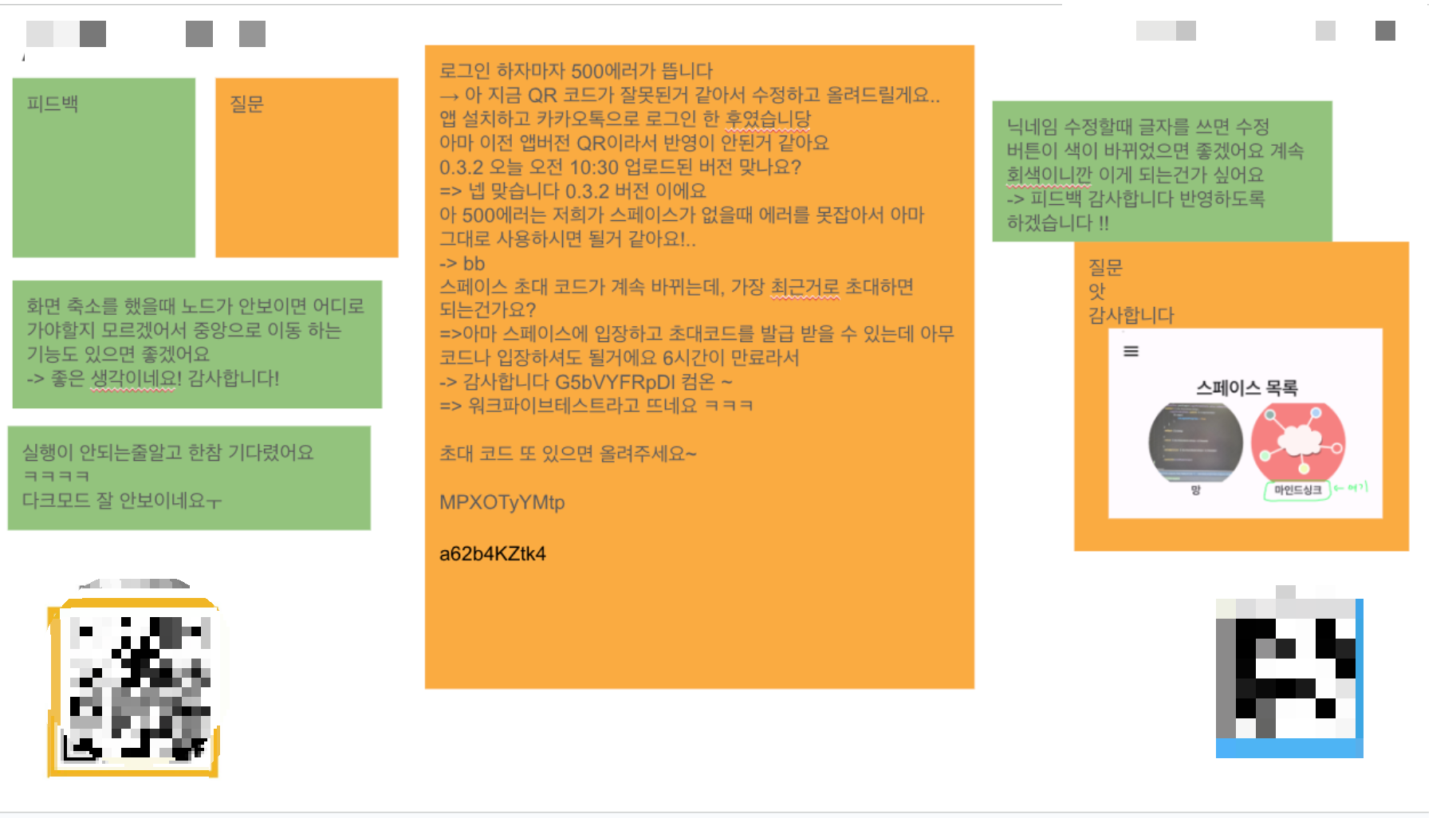 예전에 진행했던 프로젝트에서 테스트 배포 후 받았던 피드백 내용들입니다.