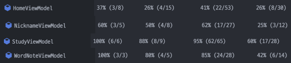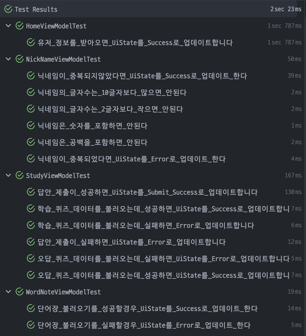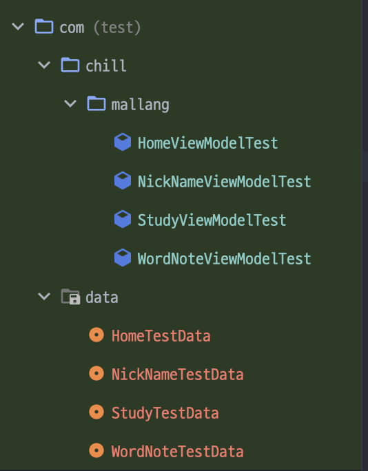 - xxViewModelTest : ViewModel에서 사용될 로직을 테스트하는 코드들입니다.