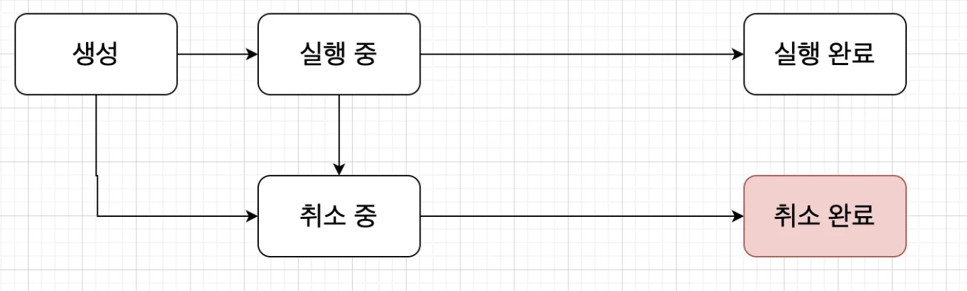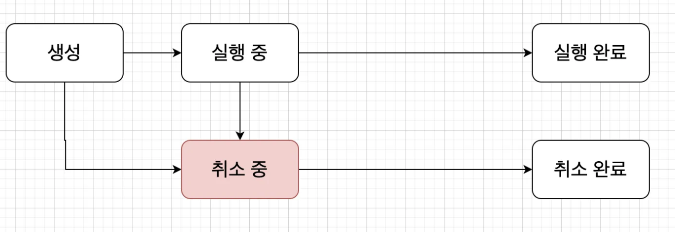 - 코루틴은 생성, 실행 중, 실행 완료 중, 취소 중, 취소 완료 상태를 가진다.