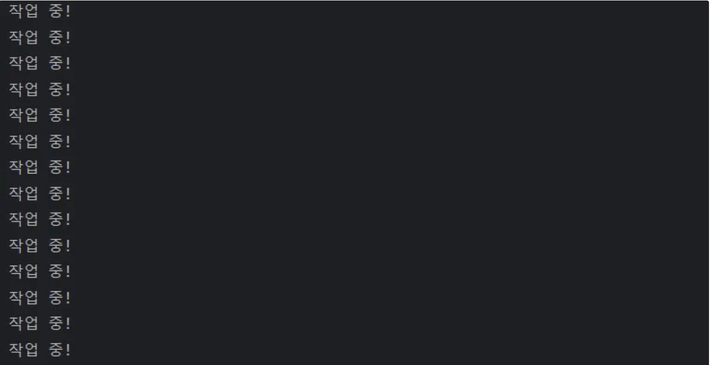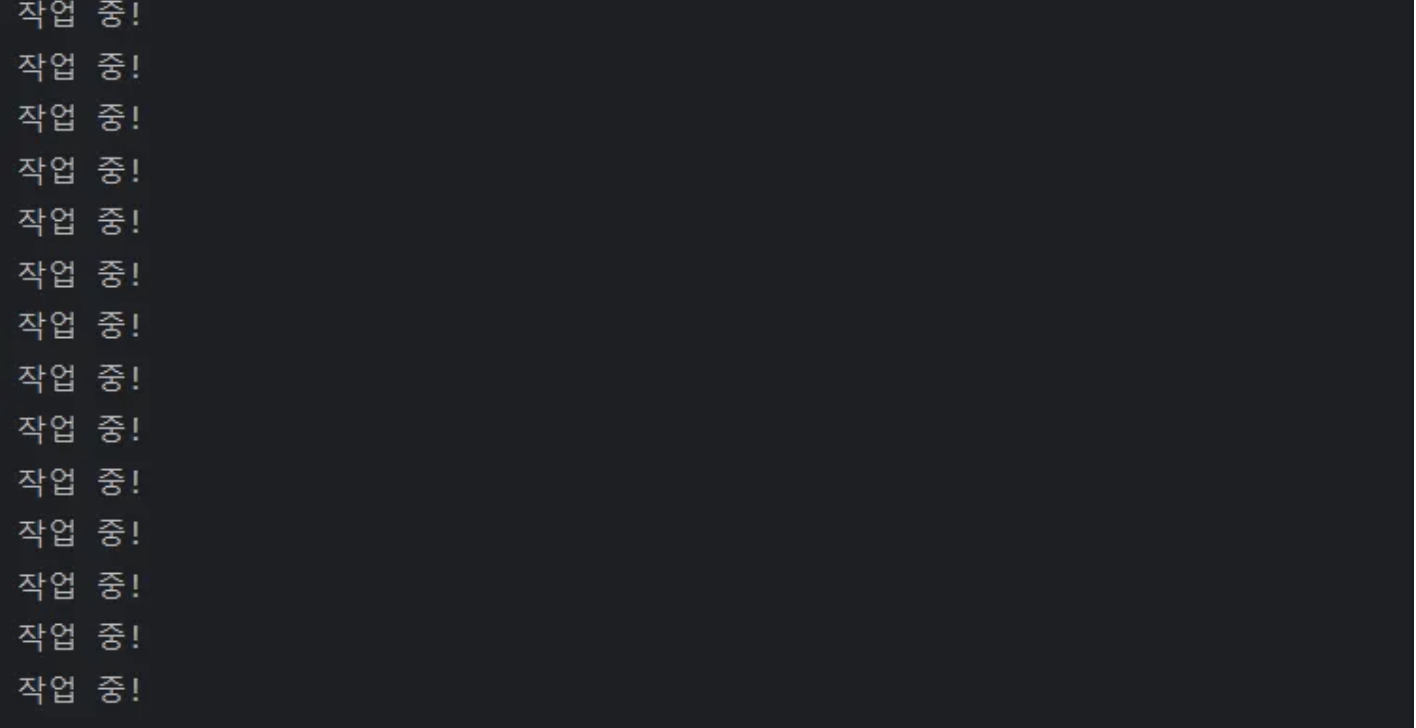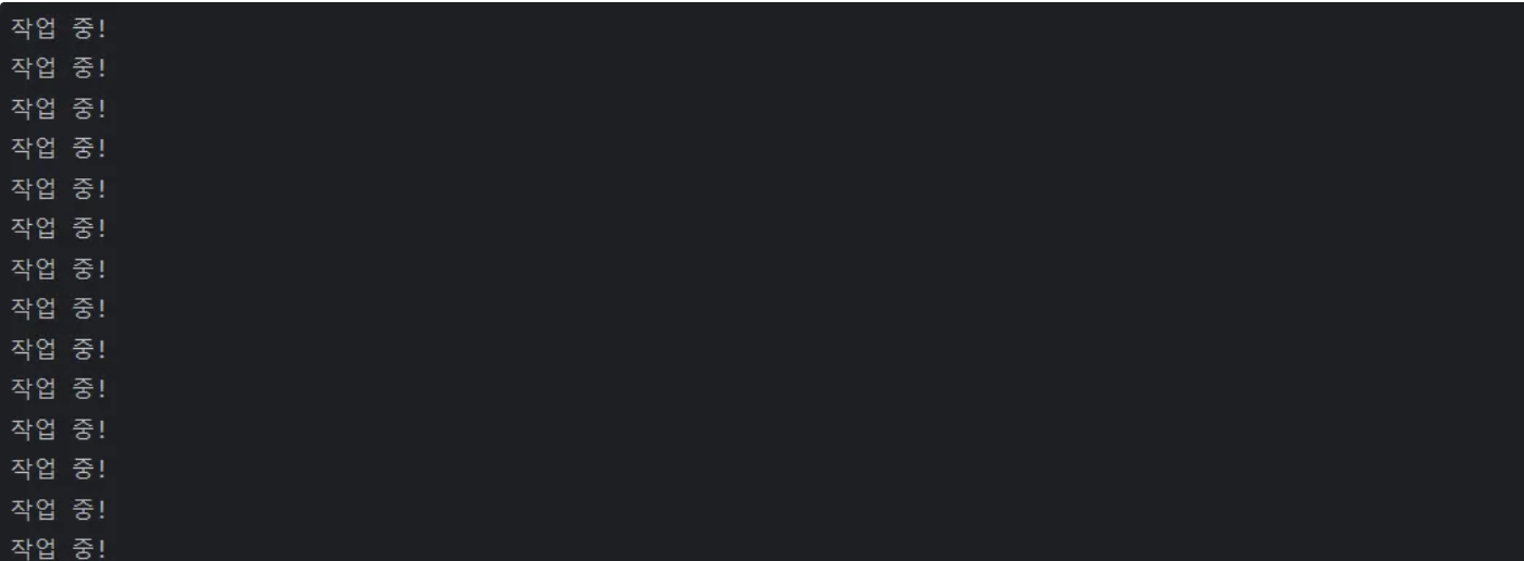 println("작업 중!")