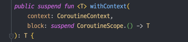 withContext가 호출되면 함수의 인자로 설정된 CoroutineContext 객체를 사용해 block 람다식을 실행하고, 완료되면 결과를 반환한다.