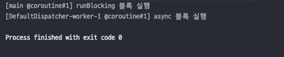 코드의 실해 결과를 보면 async 블록을 실행하는 코루틴은 runBlocking 코루틴과 다른 것을 볼 수 있다.