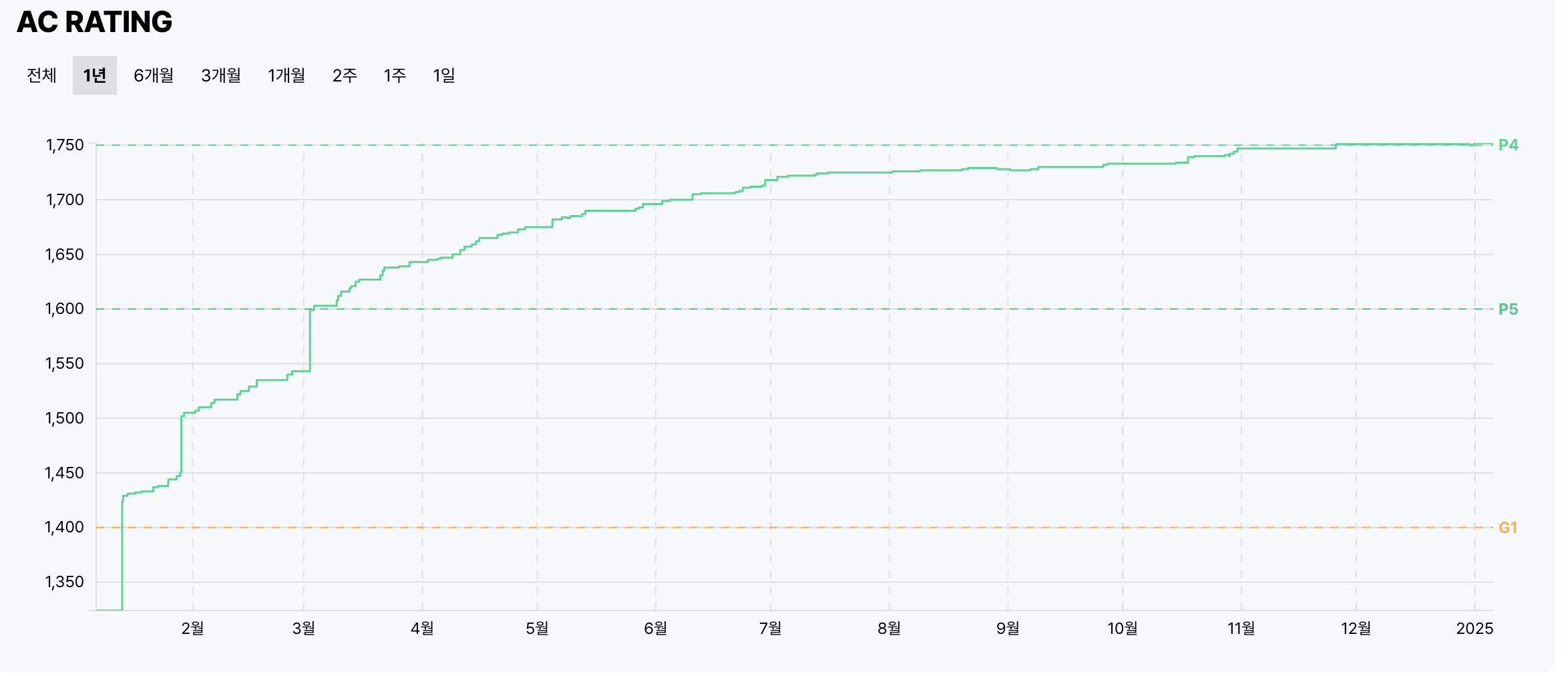 일 년 동안 약 150문제를 풀었고 티어는 골드 2에서 플레 4까지 올라갔네요