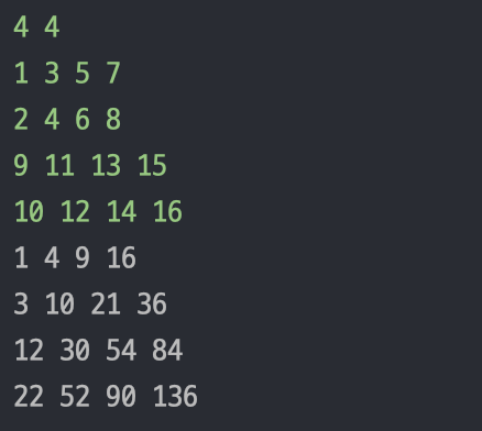 위에서는 1차원 누적합에 대해서 다뤘다면 지금부터는 2차원 누적합에 대해 다뤄보겠습니다.