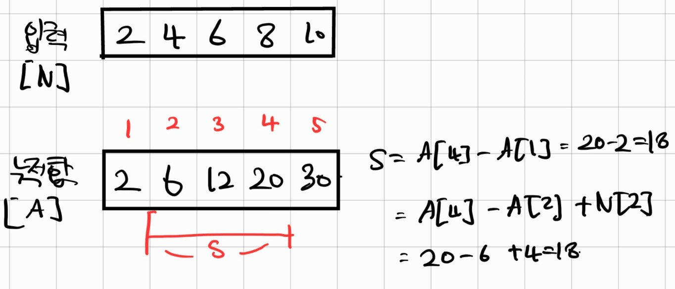 일반적으로 배열에서 특정 구간의 합을 구하려면, 해당 구간의 원소를 하나씩 더해야 합니다.