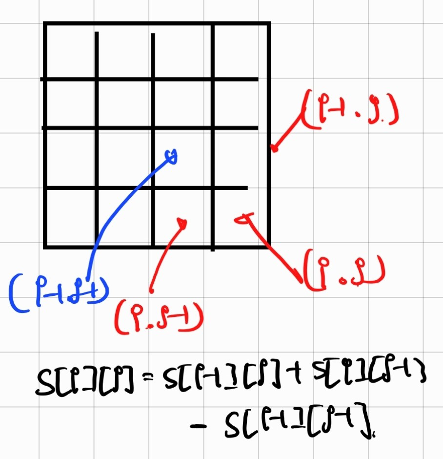 sum[i][j] - (sum[i - k][j] + sum[i][j - k] - sum[i - k][j - k])
