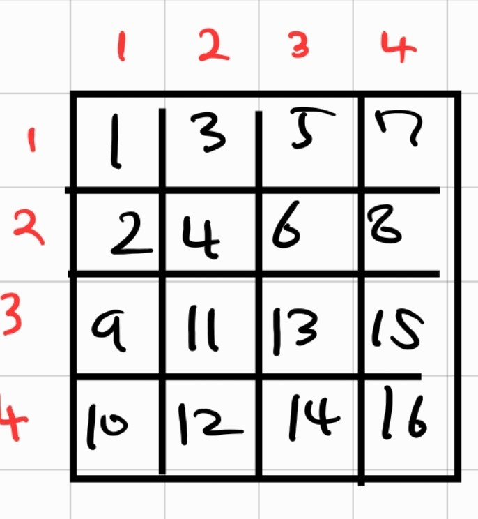 위와 같은 4*4 2차원 배열이 있다고 생각해 봅시다.