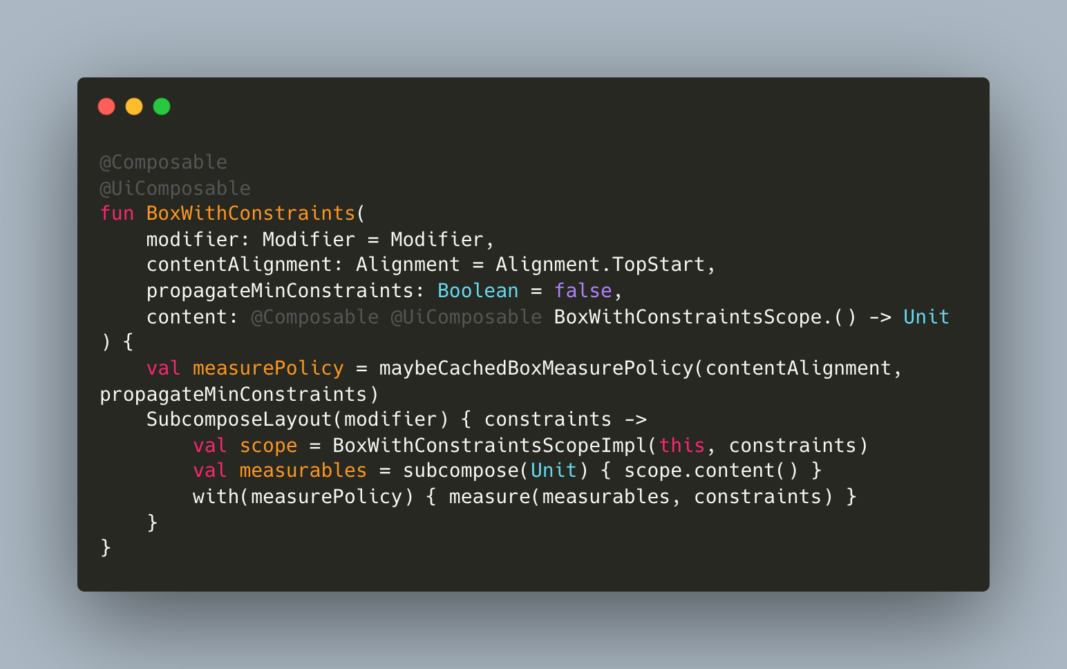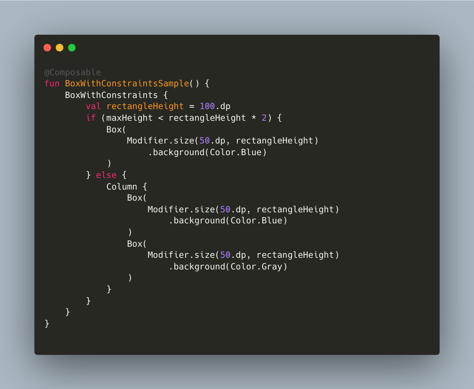 - BoxWithConstraints가 배치될 공간의 constraints를 파악합니다.