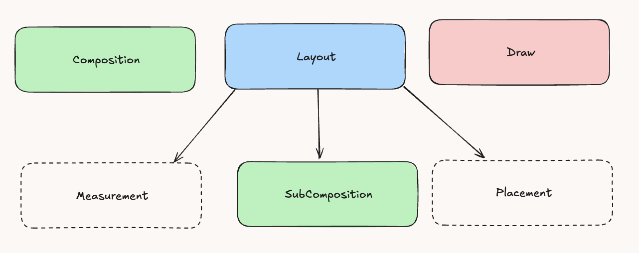 즉 SubComposeLayout을 이해하기 위해선 Compose의 Layout 과정을 숙지하고 있어야 합니다.