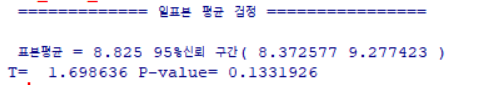 cat(" ============= 일표본 평균 검정 ================","\n","\n")