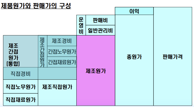 - 총 원가 = 제조원가 + 비제조 원가[운영원가]