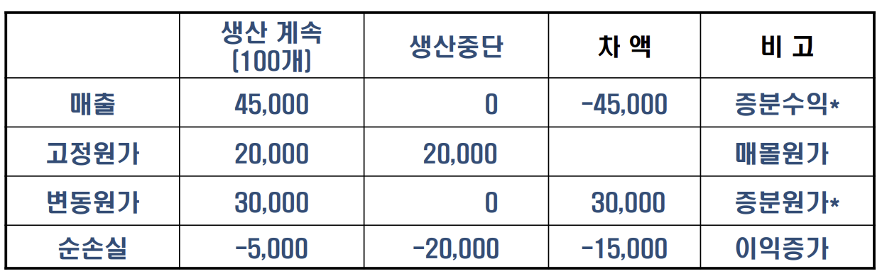 📃**생산중단 시 오히려 순손실이 증가하므로 생산을 계속하는 것이 합리적이다.**