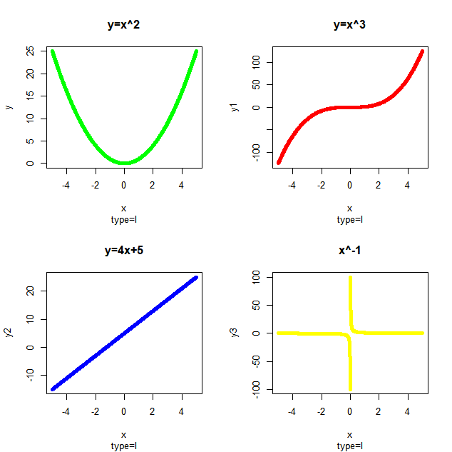 lines(x,y3,main="x^-1", sub="type=l",type="l",col="yellow",lwd=5)