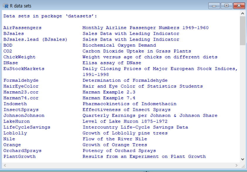 data() ## R에 저장된 데이터셋 확인하기