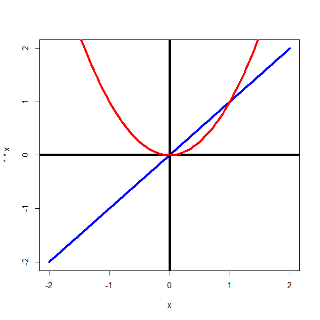 curve(1*x,-2,2,type="l",lwd=4,col="blue") ## x를 1*x로 바꿔줌