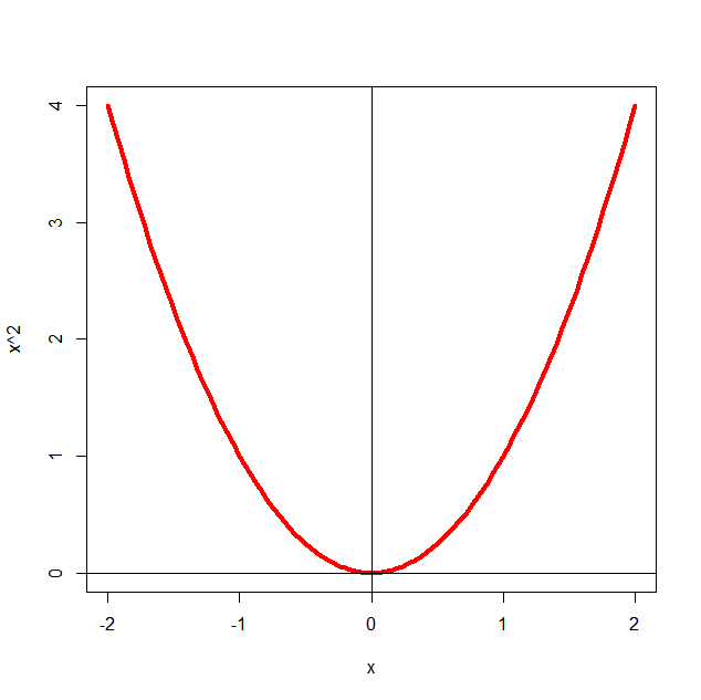 curve(x^2,2,-2,type="l",lwd=4,col="red")